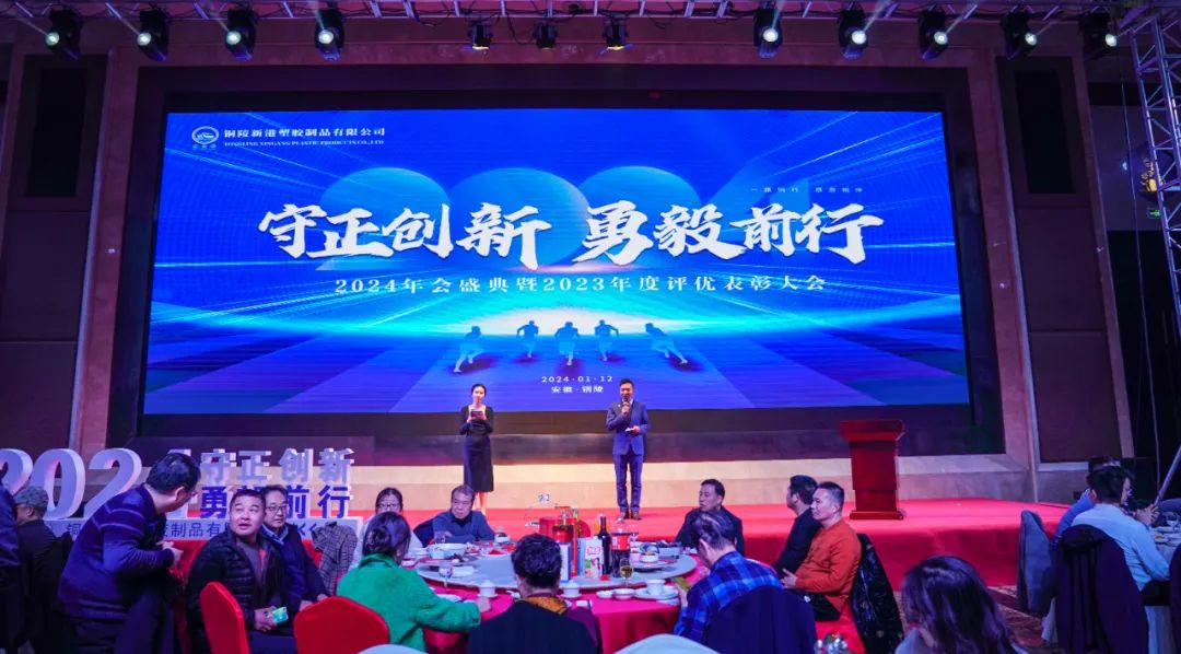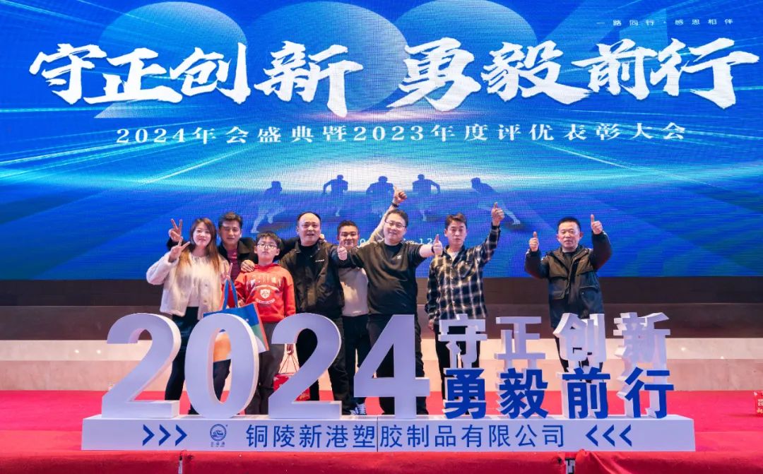 開新局,邁新步,謀新篇,創(chuàng)新績。1月12日,新港塑膠成功舉辦了“守正創(chuàng)新·勇毅前行”為主題的2024年會盛典暨2023年度評優(yōu)表彰大會。董事長吳士君先生、總經(jīng)理吳琳女士攜全體職工,與社會各界朋友們齊聚一堂,共同奏響2024年的全新序曲。